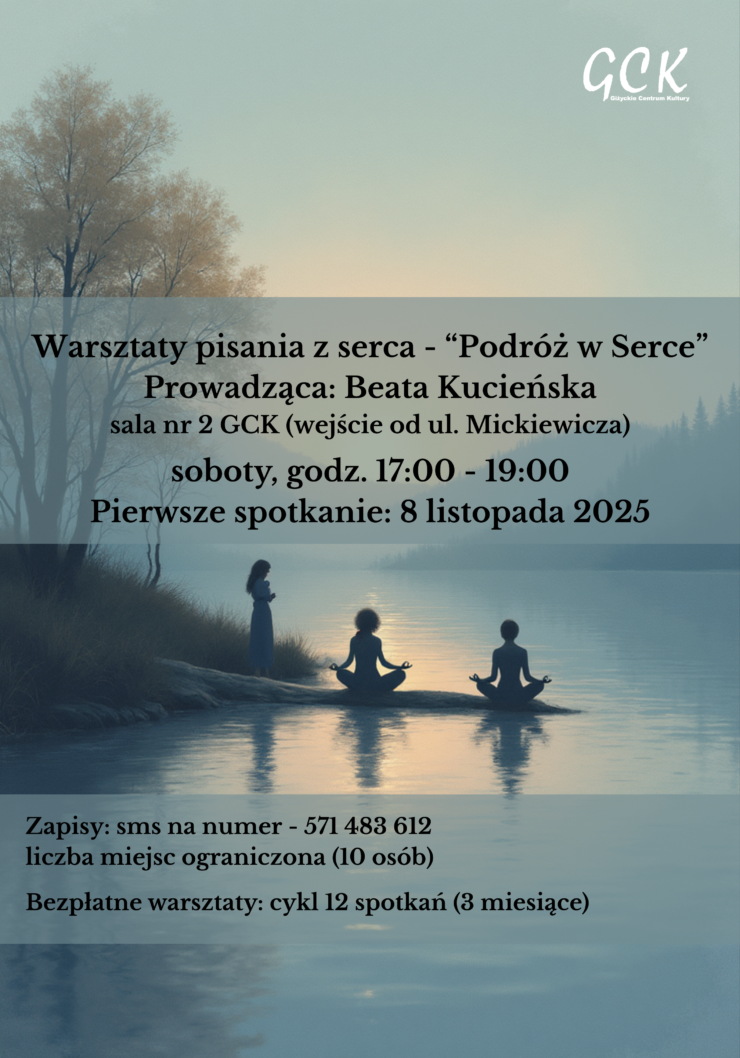 Podczas zajęć uczestnicy poznają techniki medytacyjne wspierające uważność i autorefleksję oraz narzędzia pisarskie pozwalające wyrazić emocje i intuicję w formie literackiej. To przestrzeń dla młodzieży i dorosłych, którzy chcą pogłębić samopoznanie, nauczyć się słuchać siebie i twórczo komunikować swoje doświadczenia.